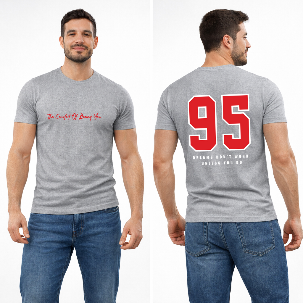 Inspired by classic varsity athletic culture and modern streetwear aesthetics, this bold back-print design makes a statement without being loud. The oversized red “95” graphic with a crisp white outline captures vintage sports energy, while the motivational line underneath reinforces the alpha mindset: