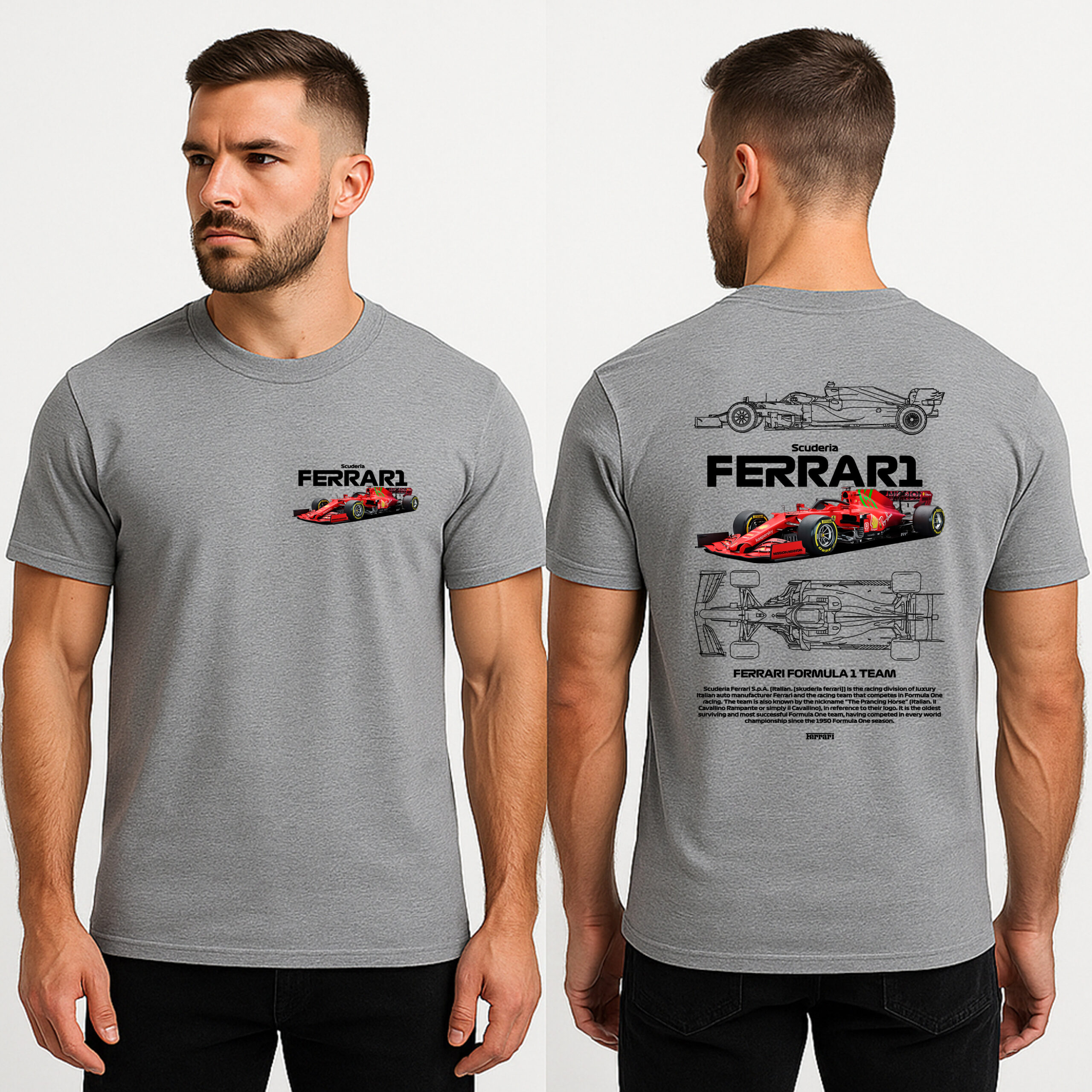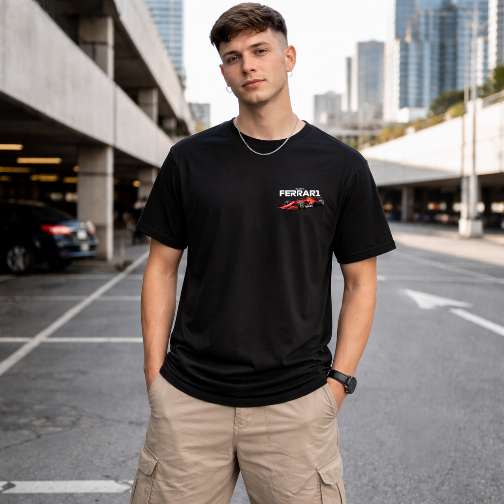 . Premium motorsport streetwear look (not a cheap “tourist tee”)