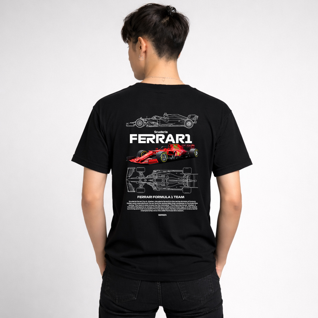 This F1 blueprint t-shirt is made for people who appreciate speed, design, and the details — from the technical blueprint lines to the high-contrast racing silhouette on the back.