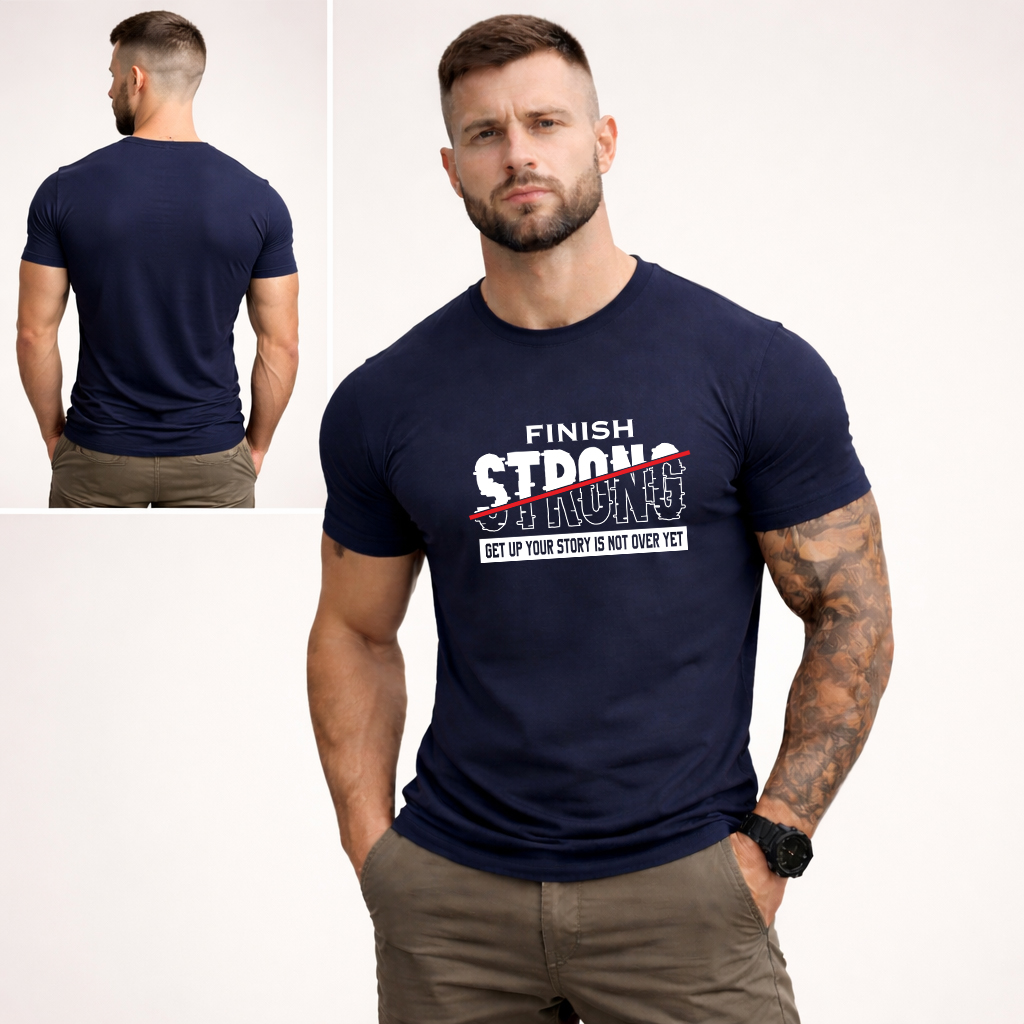Ignite your inner fire and conquer every challenge with our Finish Strong Motivational Tee.