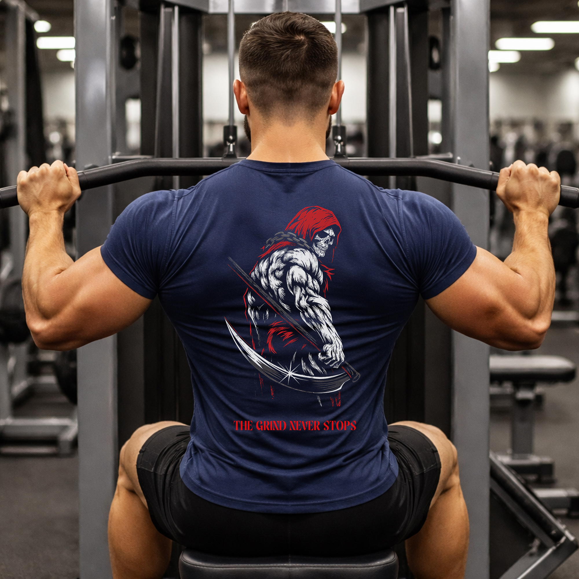 Grim Reaper Gym Tee for the ones who show up when nobody’s watching.