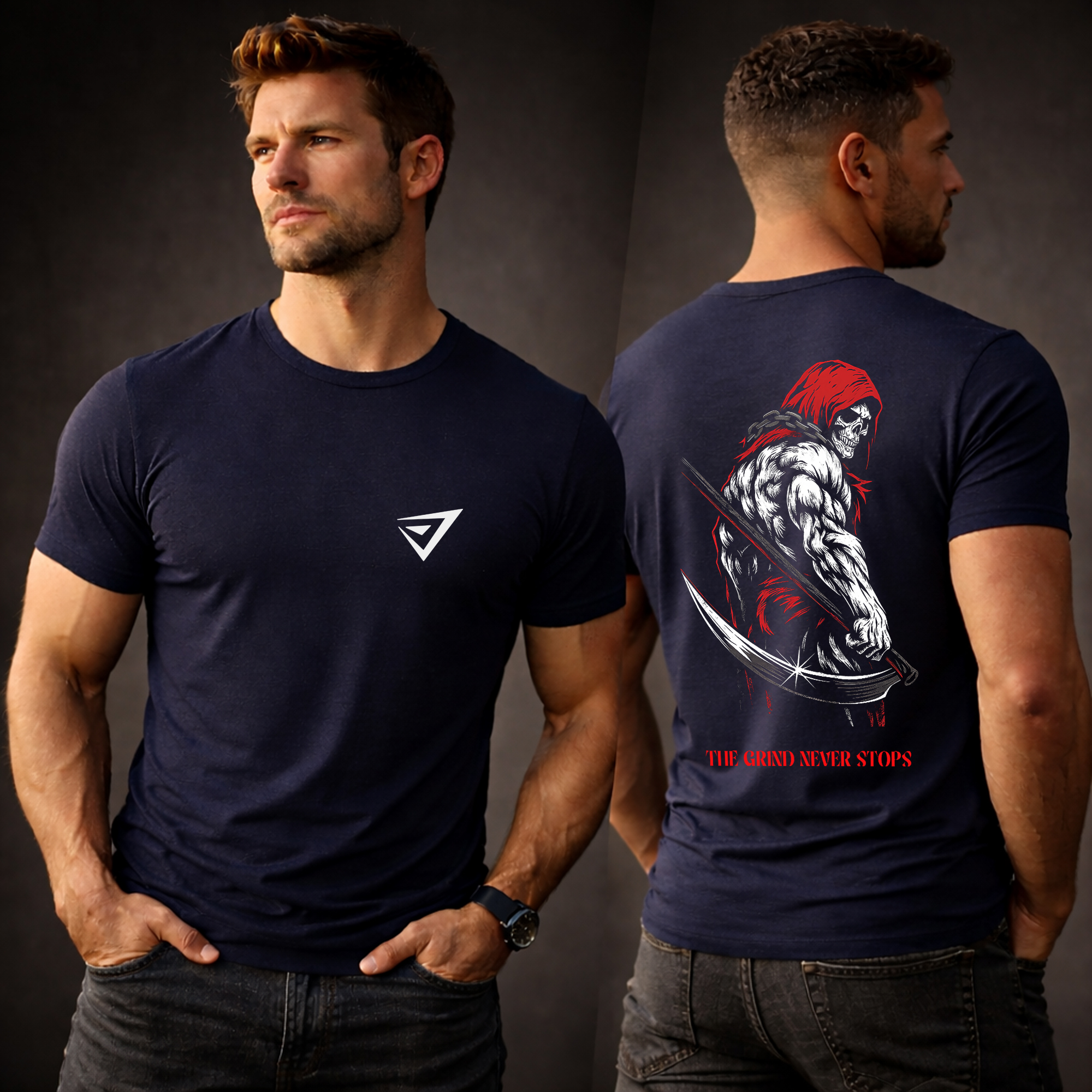 This Grim Reaper gym tee is made for lifters who train when it’s hard, show up when it hurts, and believe that discipline beats motivation every time. The reaper graphic symbolizes the grind — relentless, focused, and unstoppable.