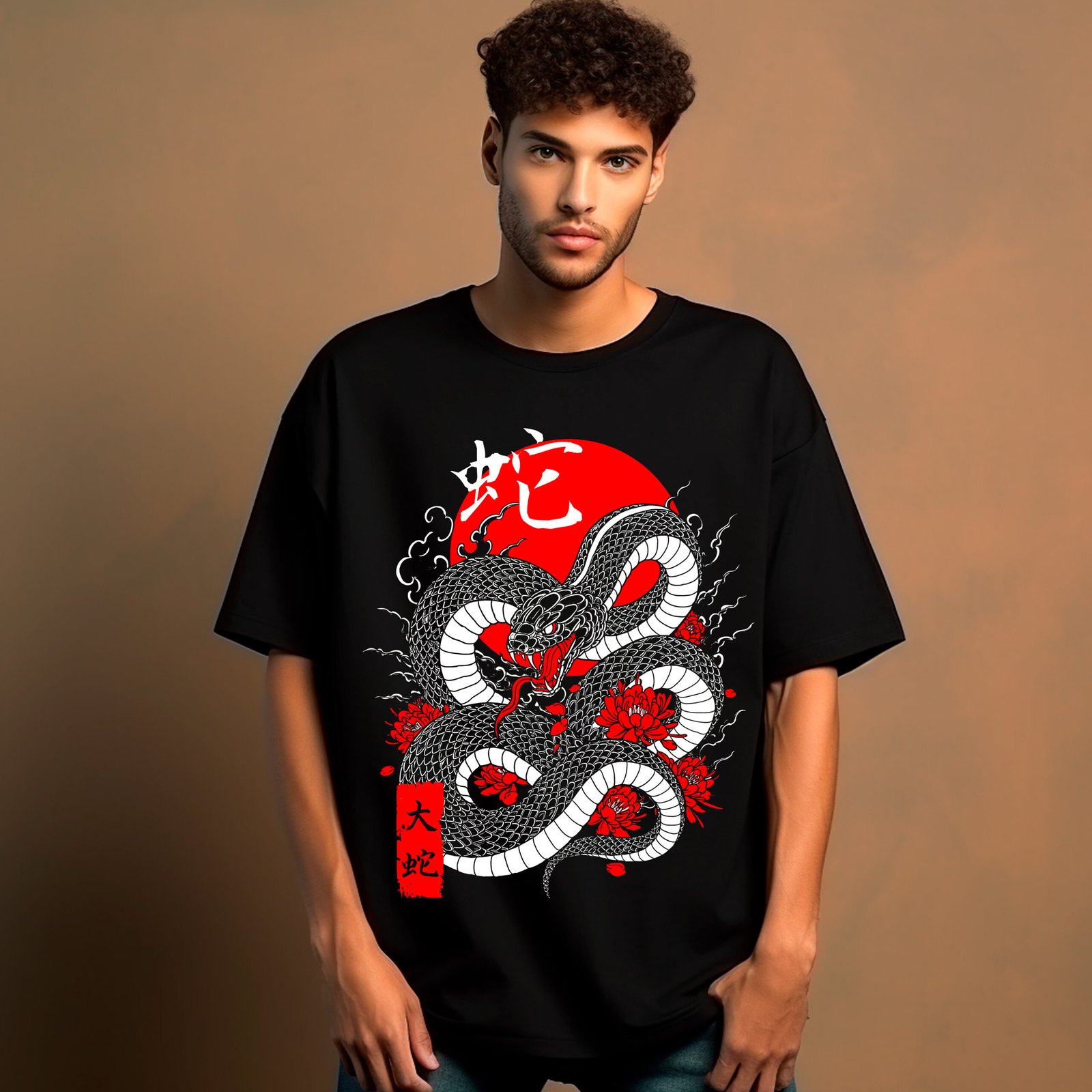 Designed for those captivated by the intricate beauty of traditional Japanese art, the profound symbolism of the serpent, and the vibrant energy of the rising sun, this T-shirt is more than just clothing – it’s a wearable masterpiece that embodies strength, rebirth, and a unique aesthetic.
