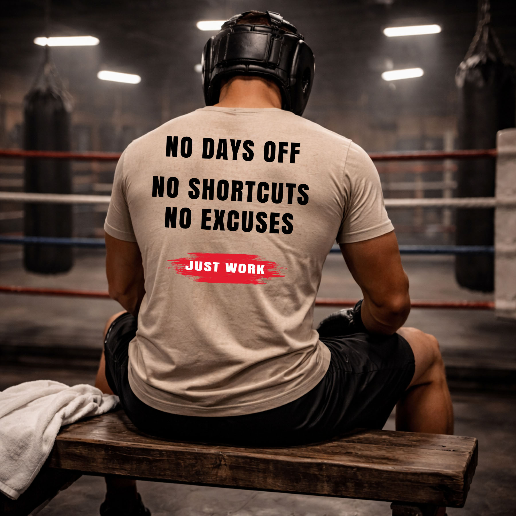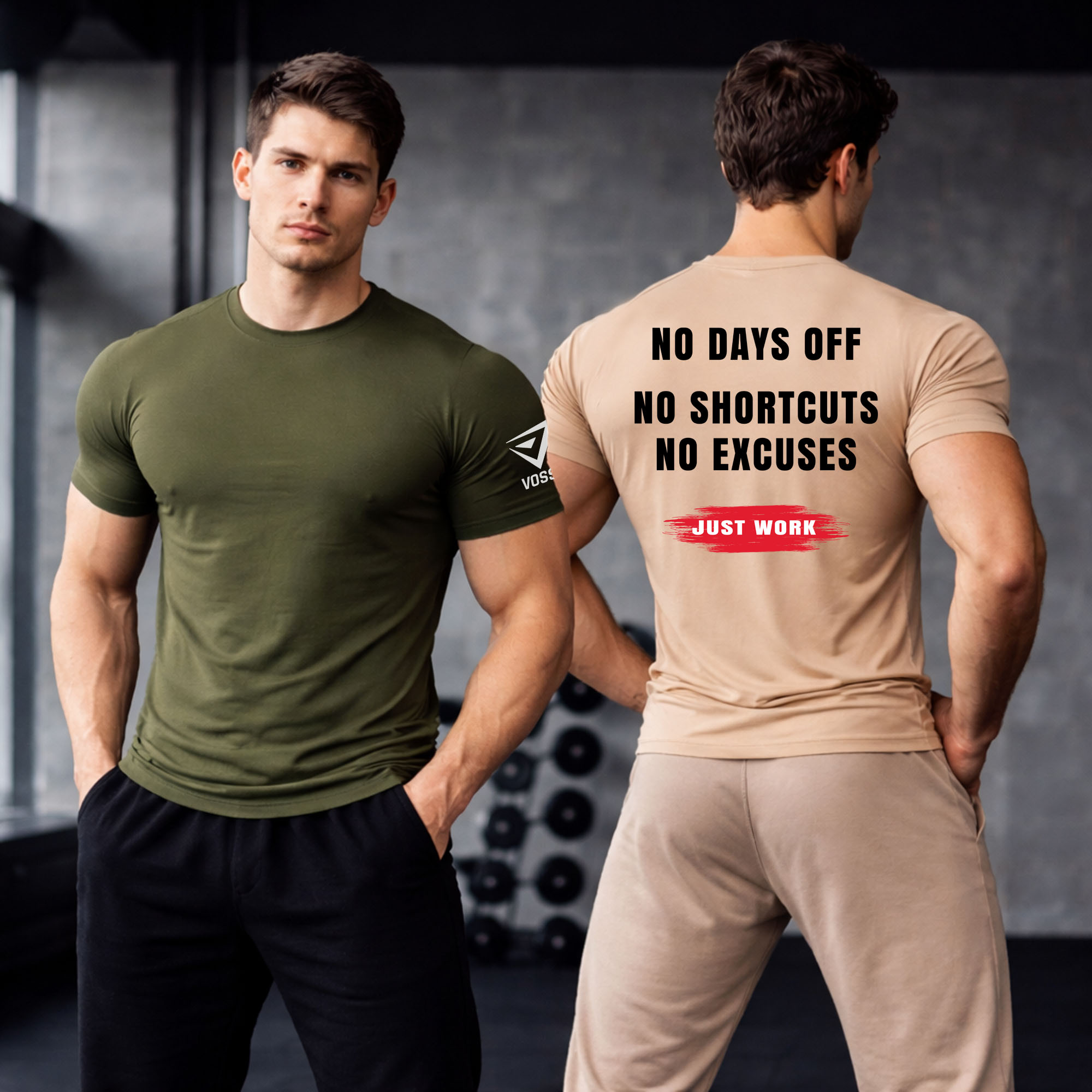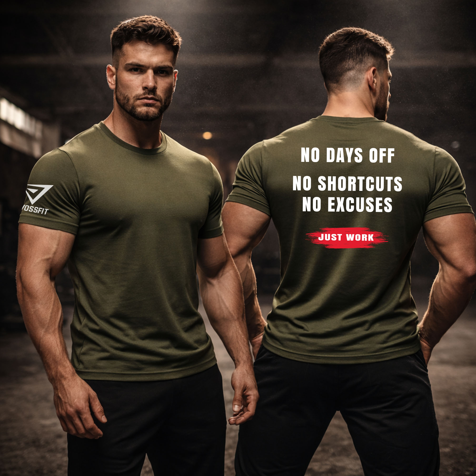 The Just Work Gym Shirt is designed for those who don’t need motivation — only discipline. This version focuses on a clean, minimal aesthetic with a powerful message placed on the back: