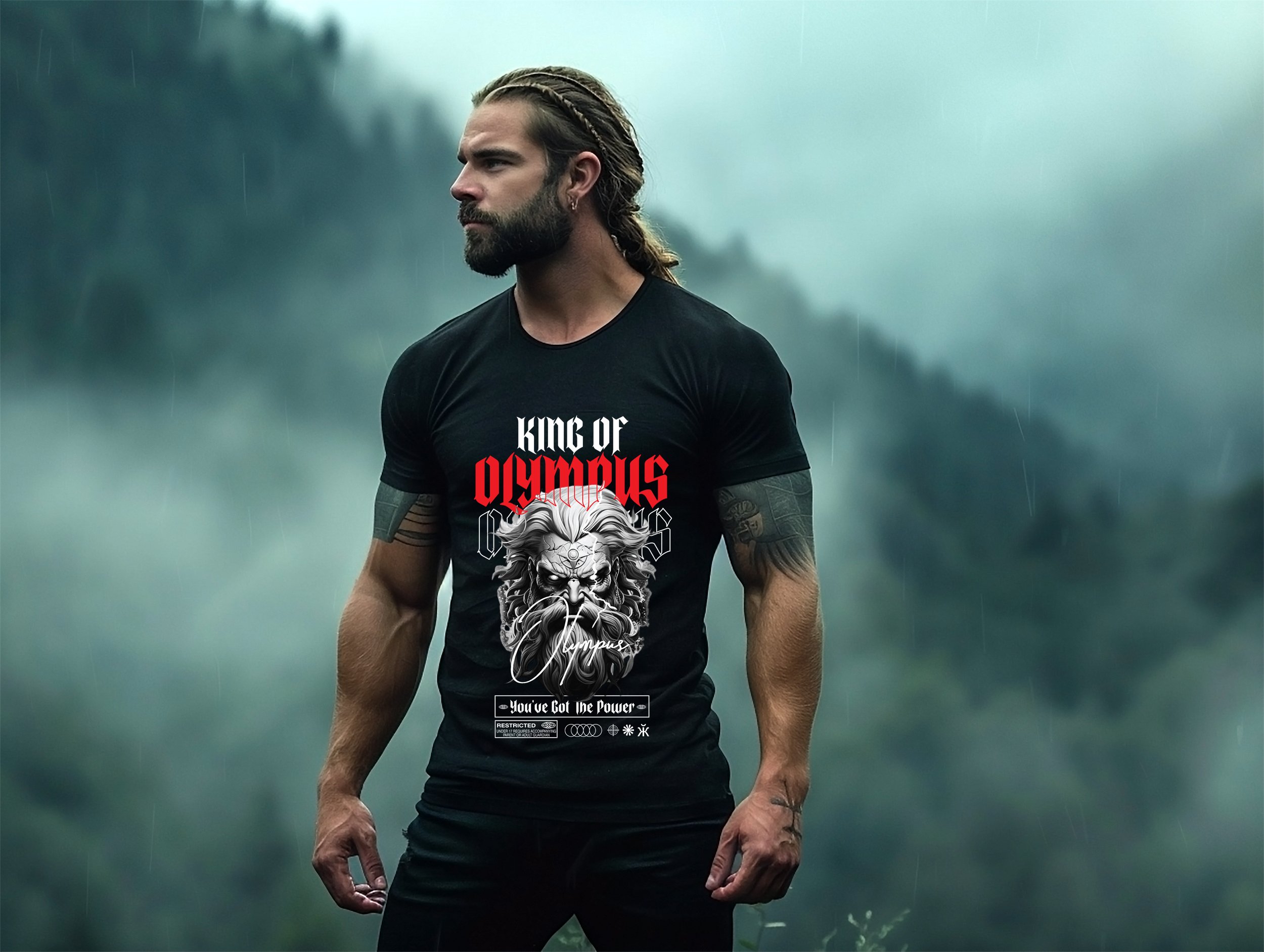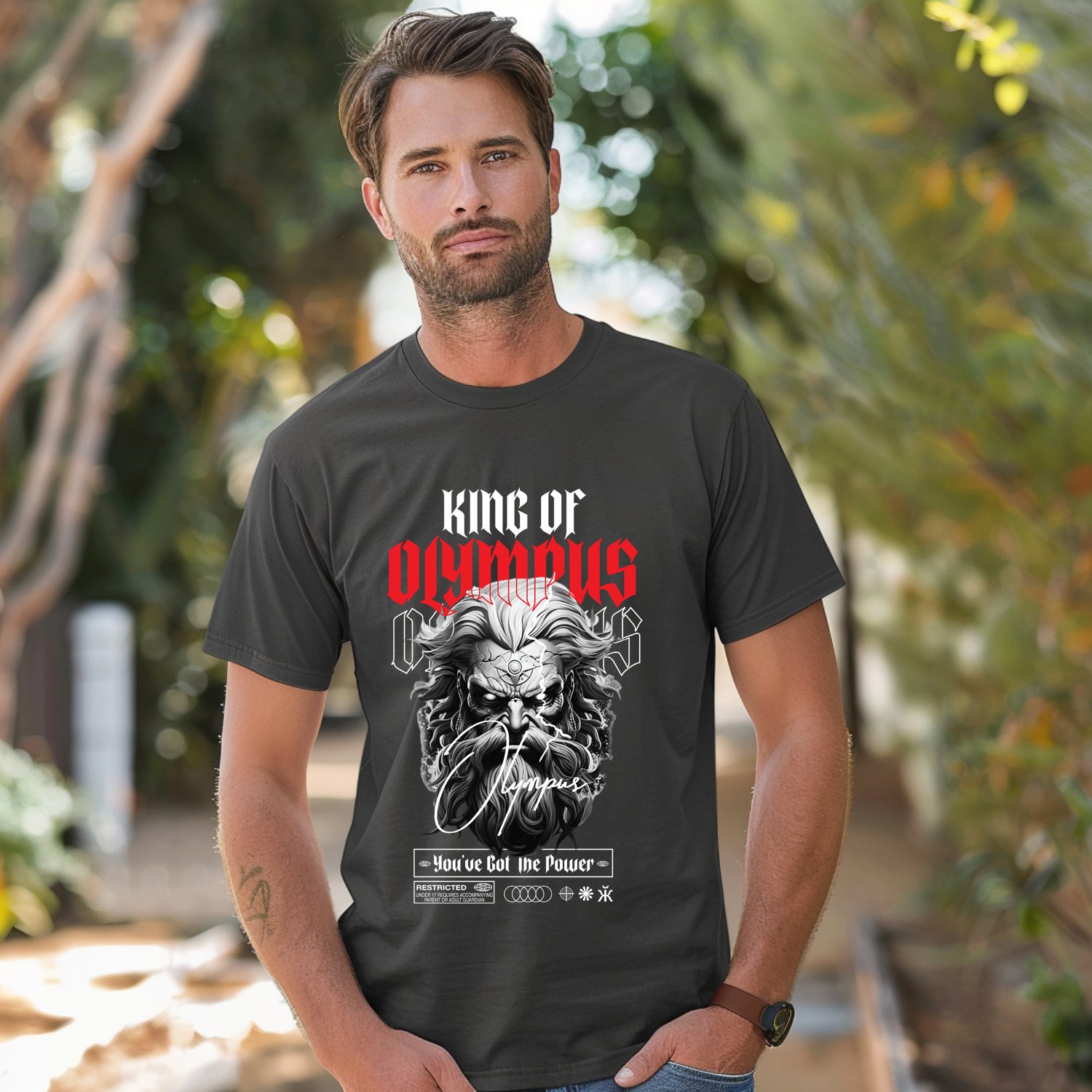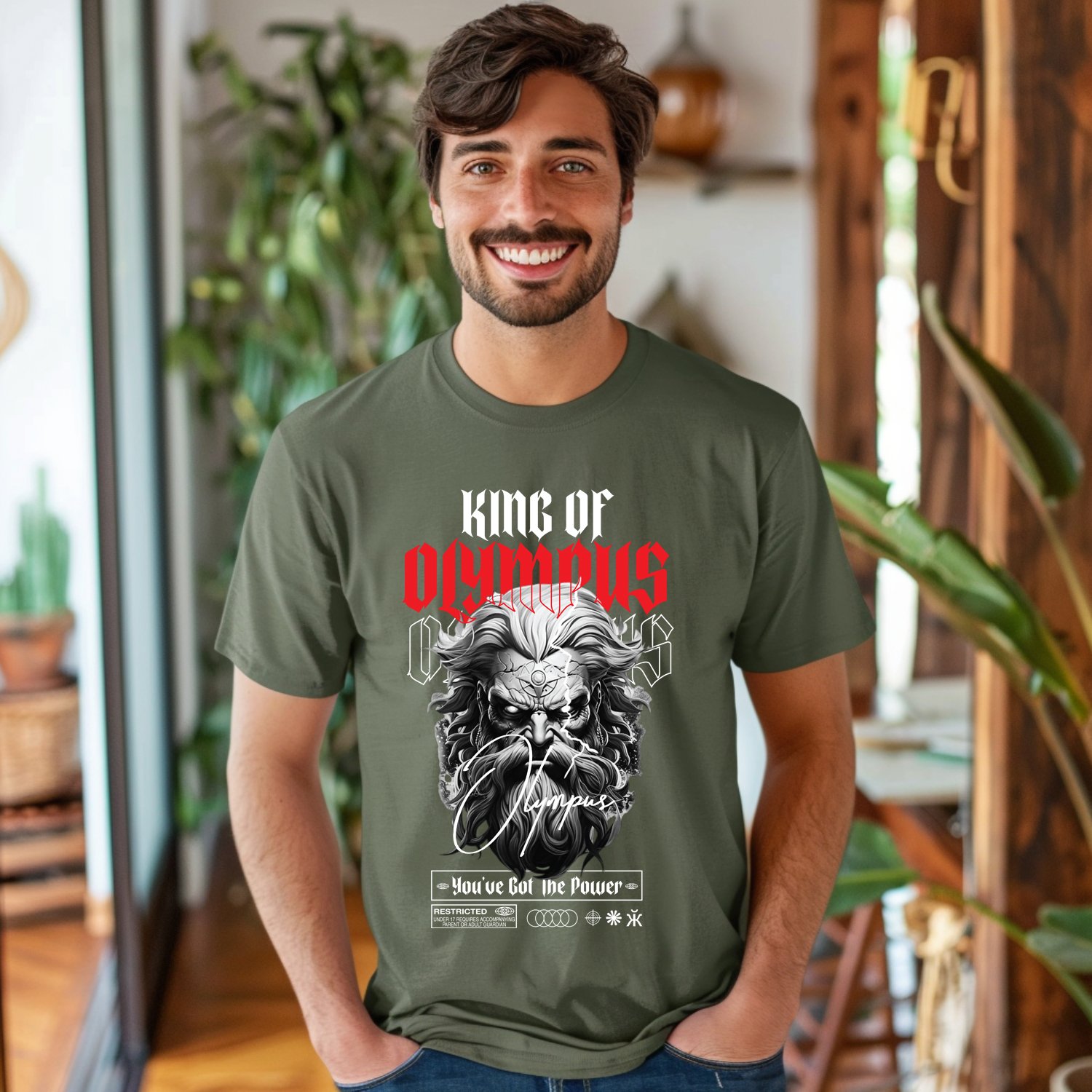 Channel the power of the gods with our “King of Olympus” t-shirt, a tribute to the supreme ruler of Greek mythology, Zeus. This striking design features a detailed, fearsome depiction of the god of thunder, surrounded by the words “King of Olympus” and the powerful mantra, “You’ve Got the Power.” Crafted from high-quality, comfortable fabric, this shirt is perfect for anyone who wants to make a bold statement about their inner strength. Whether you’re a fan of mythology or simply appreciate a powerful design, this tee is a must-have. Available in a range of versatile colors, including Black, Dark Grey, Light Grey, Navy, and Military Green, and sizes S through XL. Rule your world with this epic shirt!