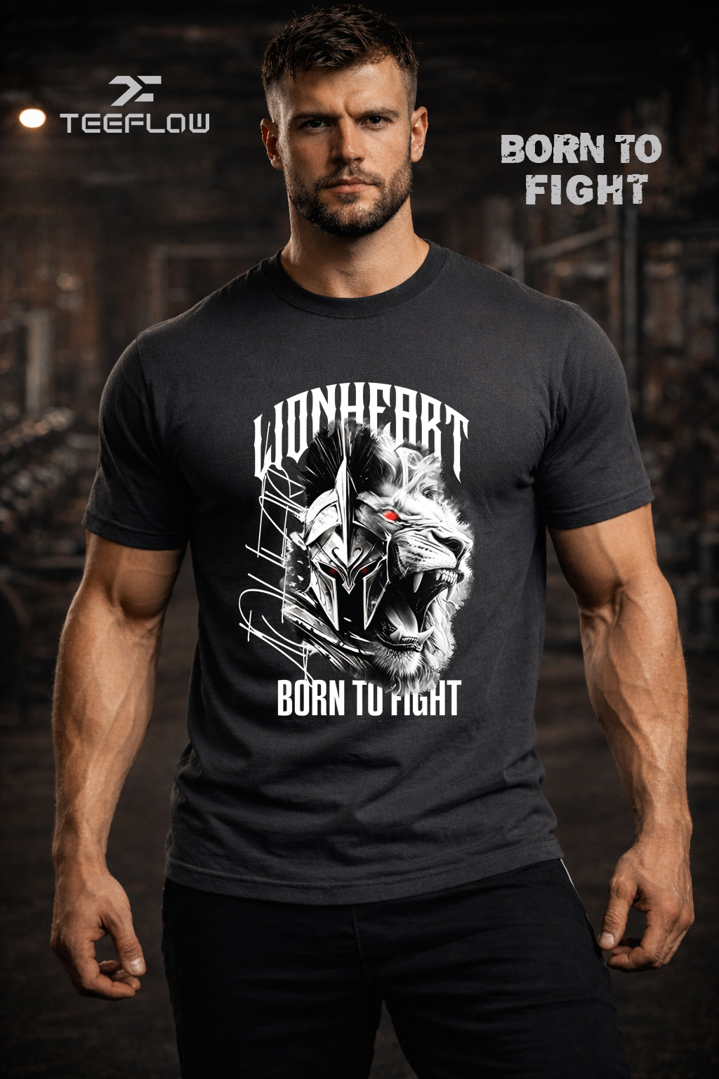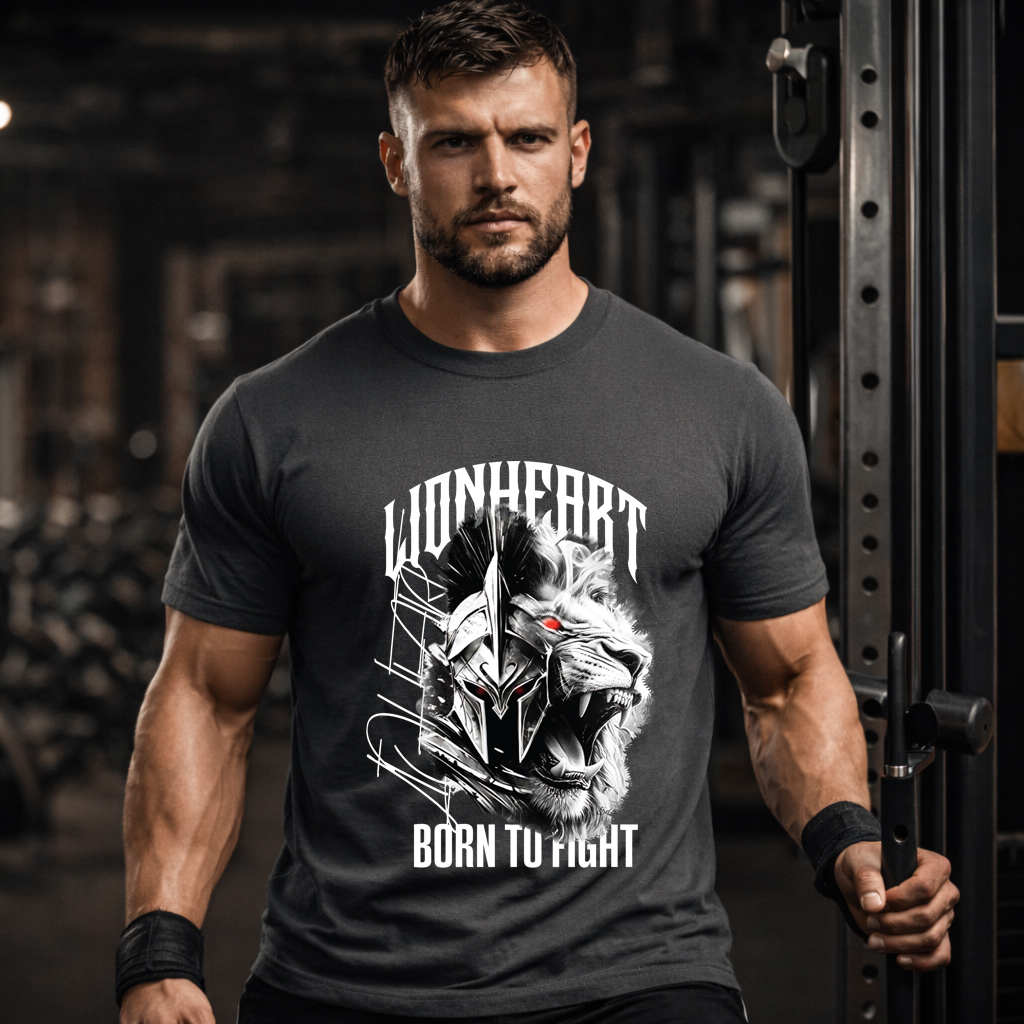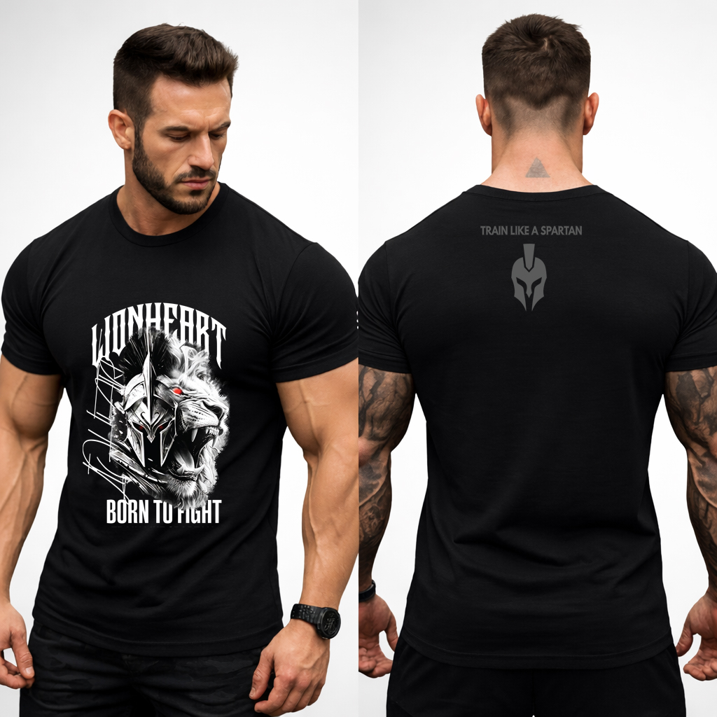 “LIONHEART SPARTAN” Gym & Workout T-Shirt – Born to Fight, Train Like a Spartan Tee.