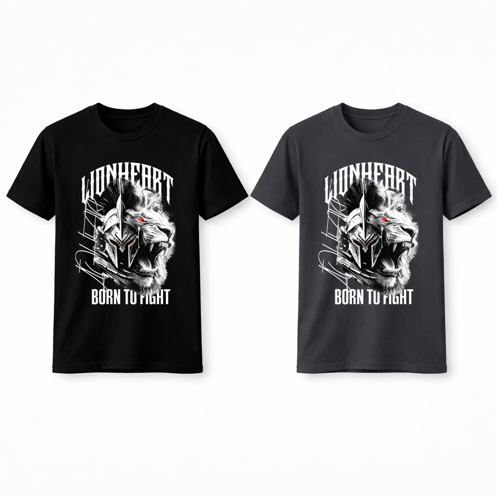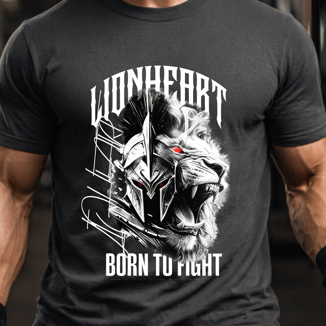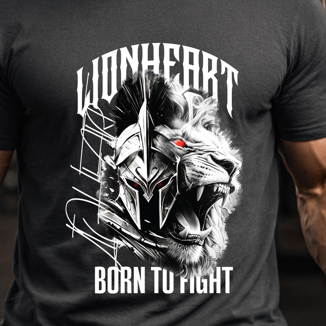Unleash your inner beast with our “LIONHEART SPARTAN” T-shirt! Featuring a powerful lion in a Spartan helmet and the motto “BORN TO FIGHT” on the front, plus “TRAIN LIKE A SPARTAN” on the back, this tee is designed for gym lovers, athletes, and anyone dedicated to fitness and strength.