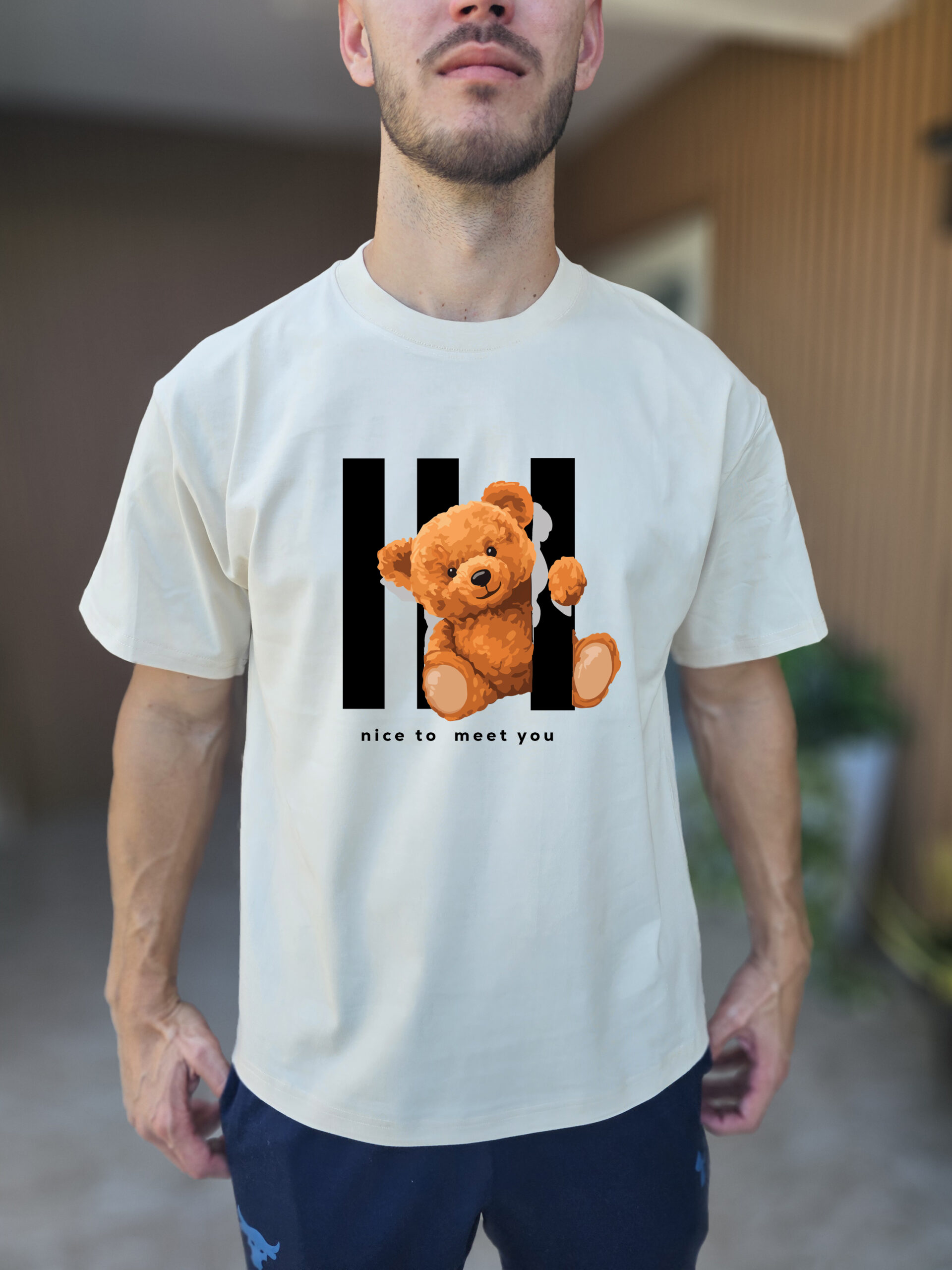 The Nice To Meet You Teddy Bear T-Shirt is a clean, cute, and minimalist graphic shirt designed for people who love soft aesthetics, cozy streetwear, and simple designs that still feel special.