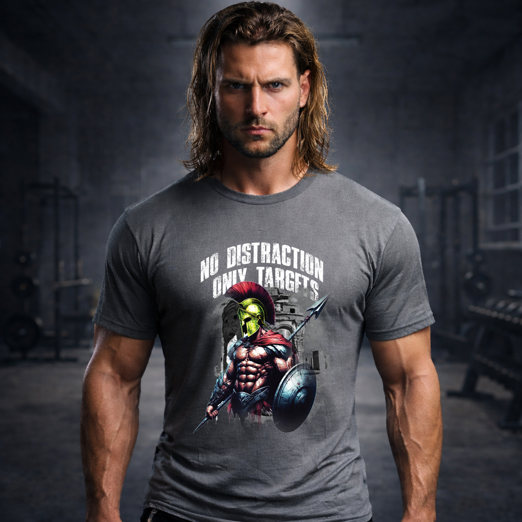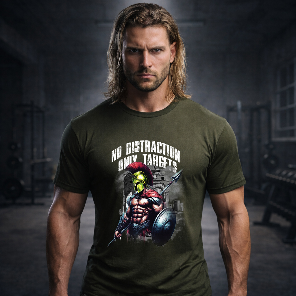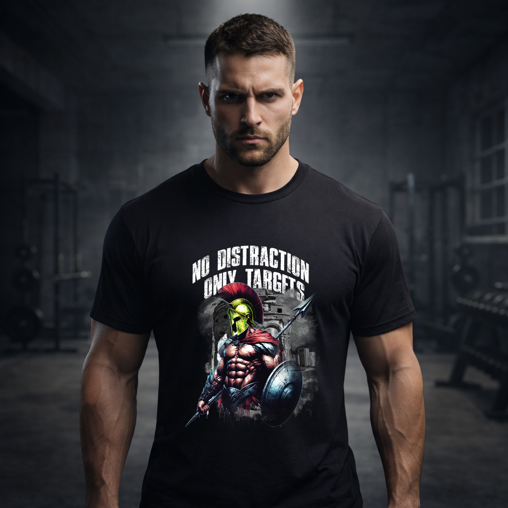 The No Distraction Only Targets Spartan T-Shirt is built for disciplined athletes. Bold warrior artwork. Powerful message. Designed for the gym and beyond.