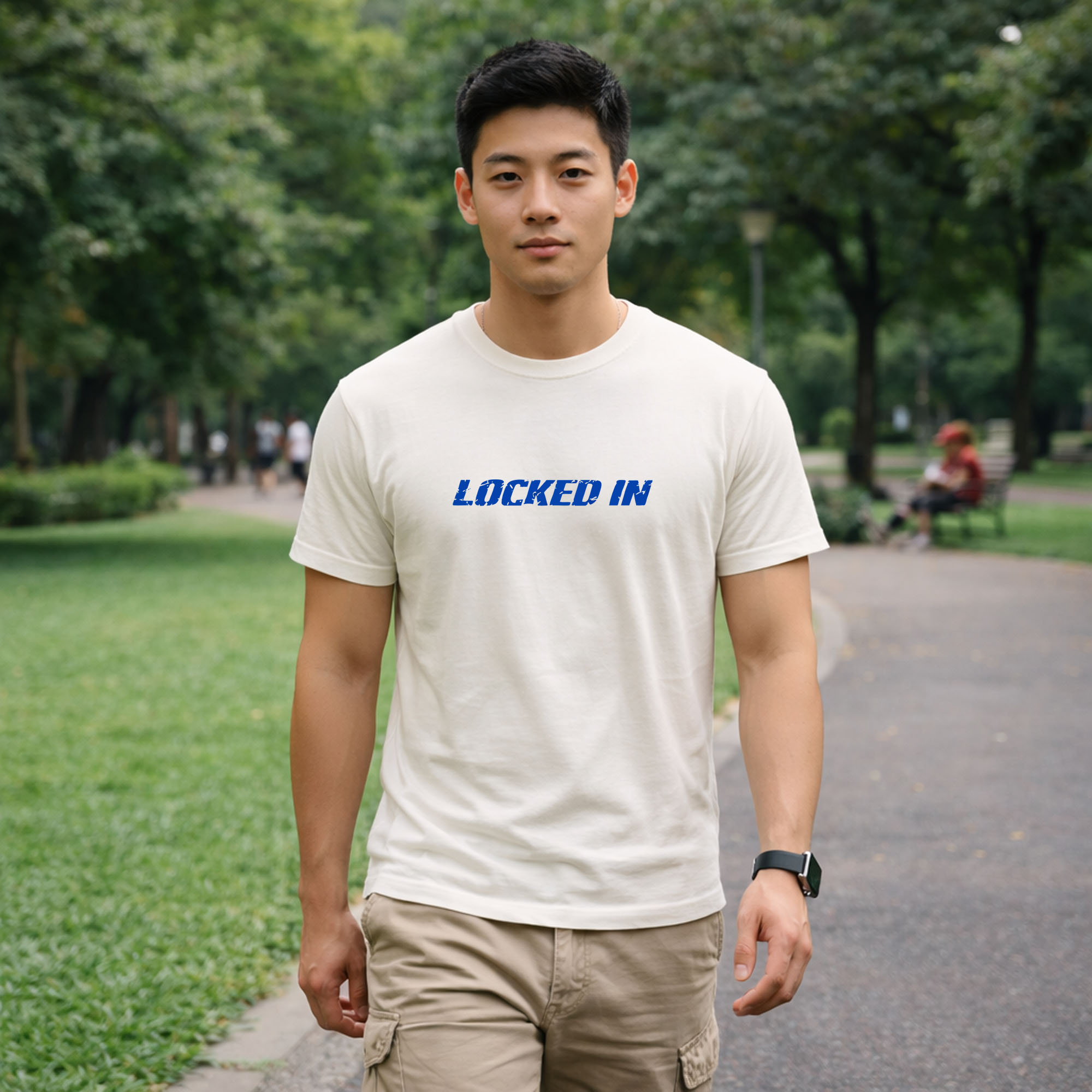 The no excuses gym t shirt for men – Locked In Edition is designed for those who train with purpose and stay focused no matter what.