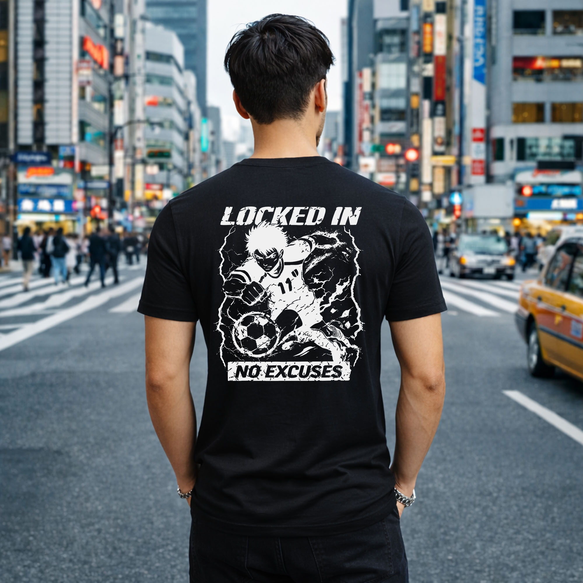 No Excuses Gym T Shirt for Men – Locked In Anime Workout Shirt 2026 | Powerful Fitness Streetwear