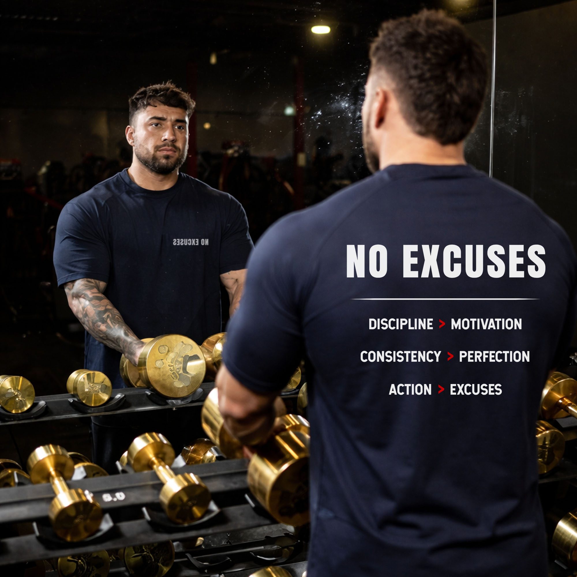 The no excuses gym t shirt is built for athletes who train with discipline, consistency, and purpose. This is more than just a t-shirt — it’s a mindset.
