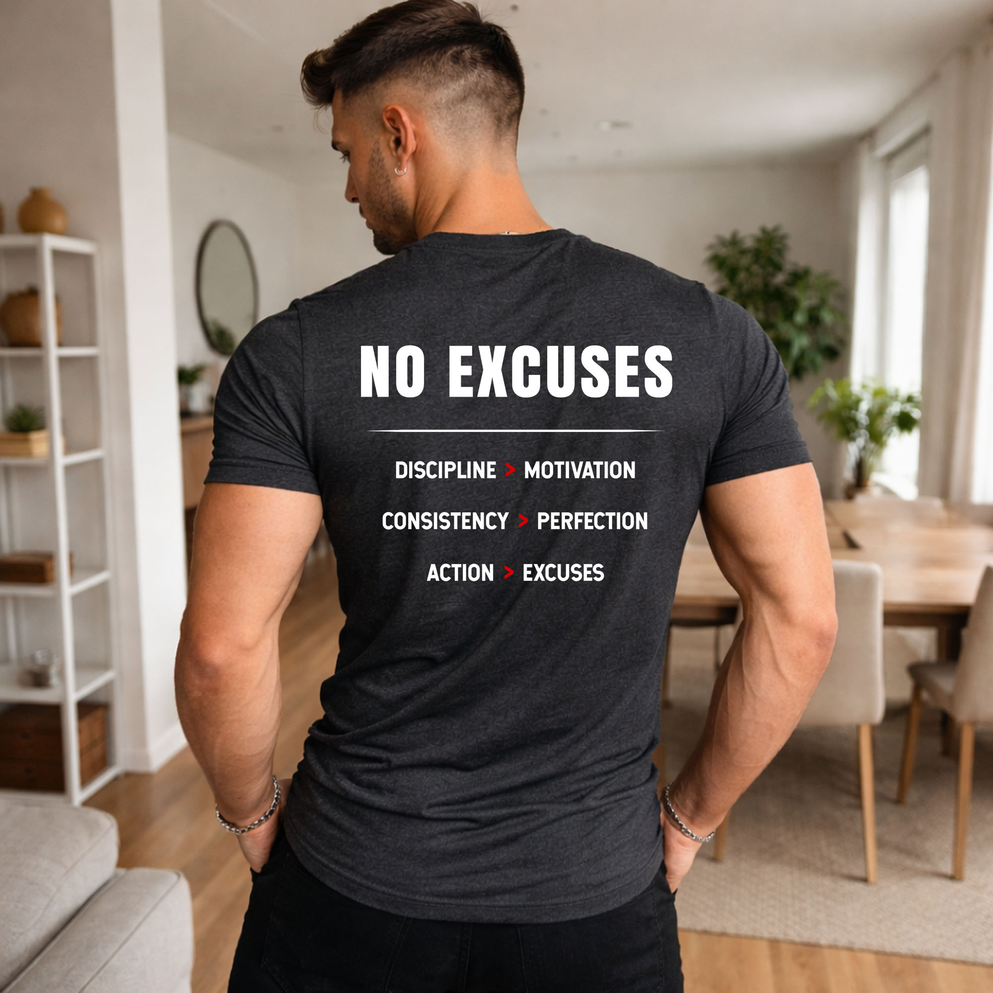 This no excuses gym t shirt is not just apparel — it’s a daily reminder of discipline, consistency, and action.