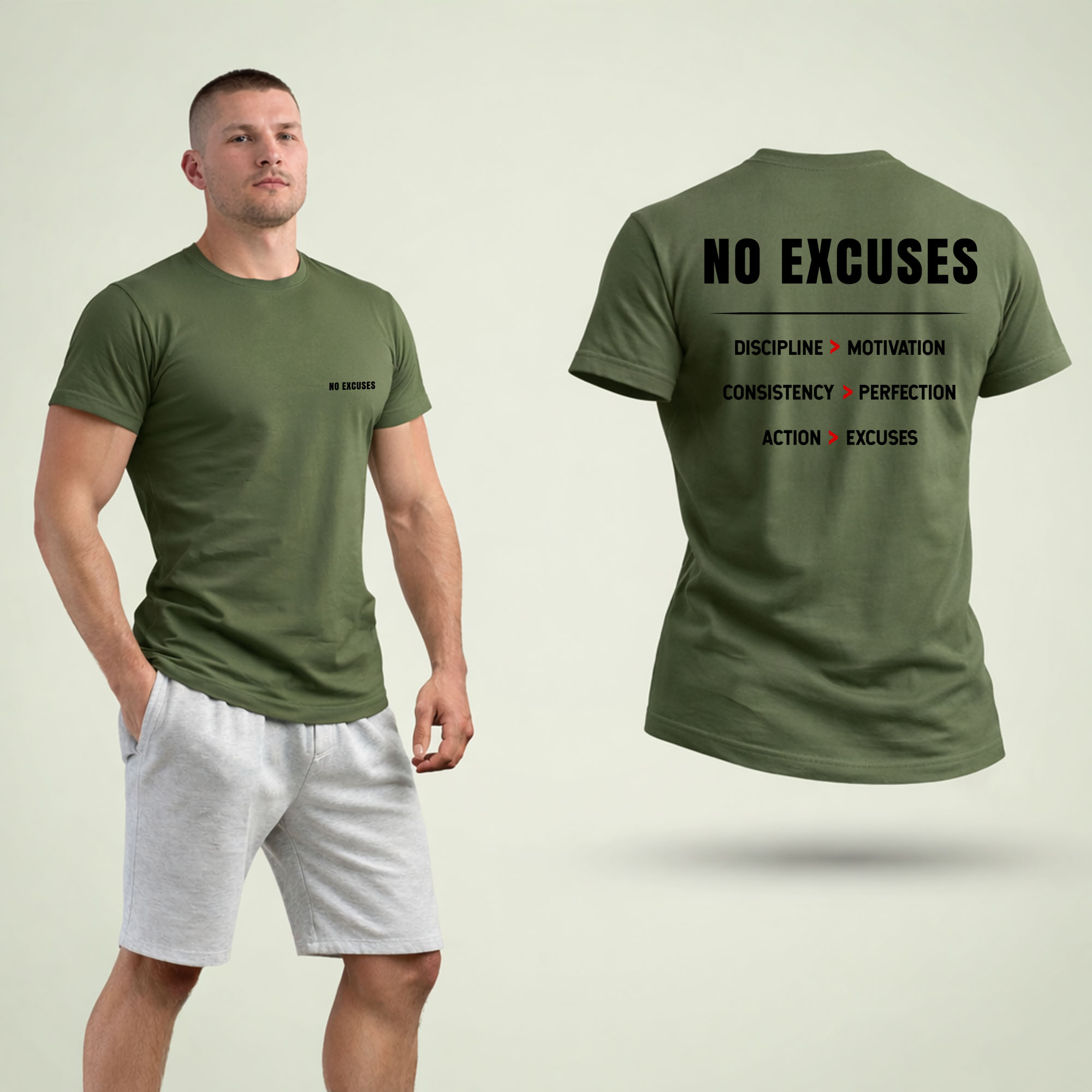 Our no excuses gym t shirt delivers comfort, durability, and a clean premium look that fits both gym and lifestyle.