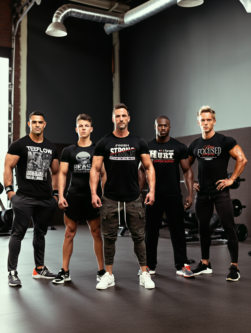 - All-Black Box: Five black tees featuring bold, powerful gym graphics.