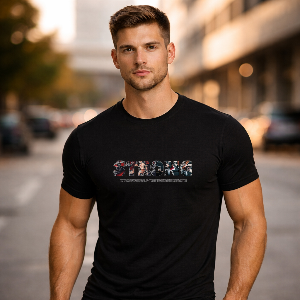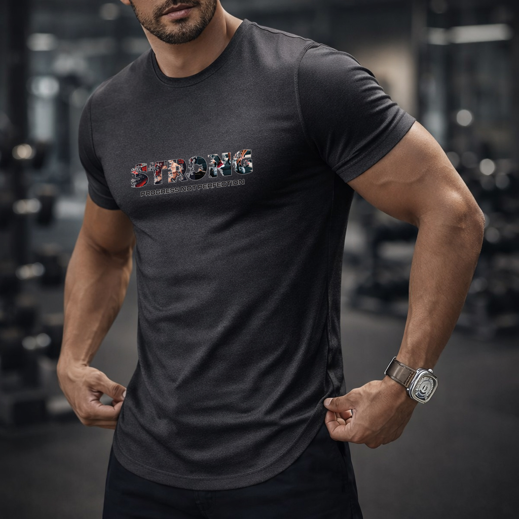 STRONG – Progress Not Perfection Gym T-Shirt