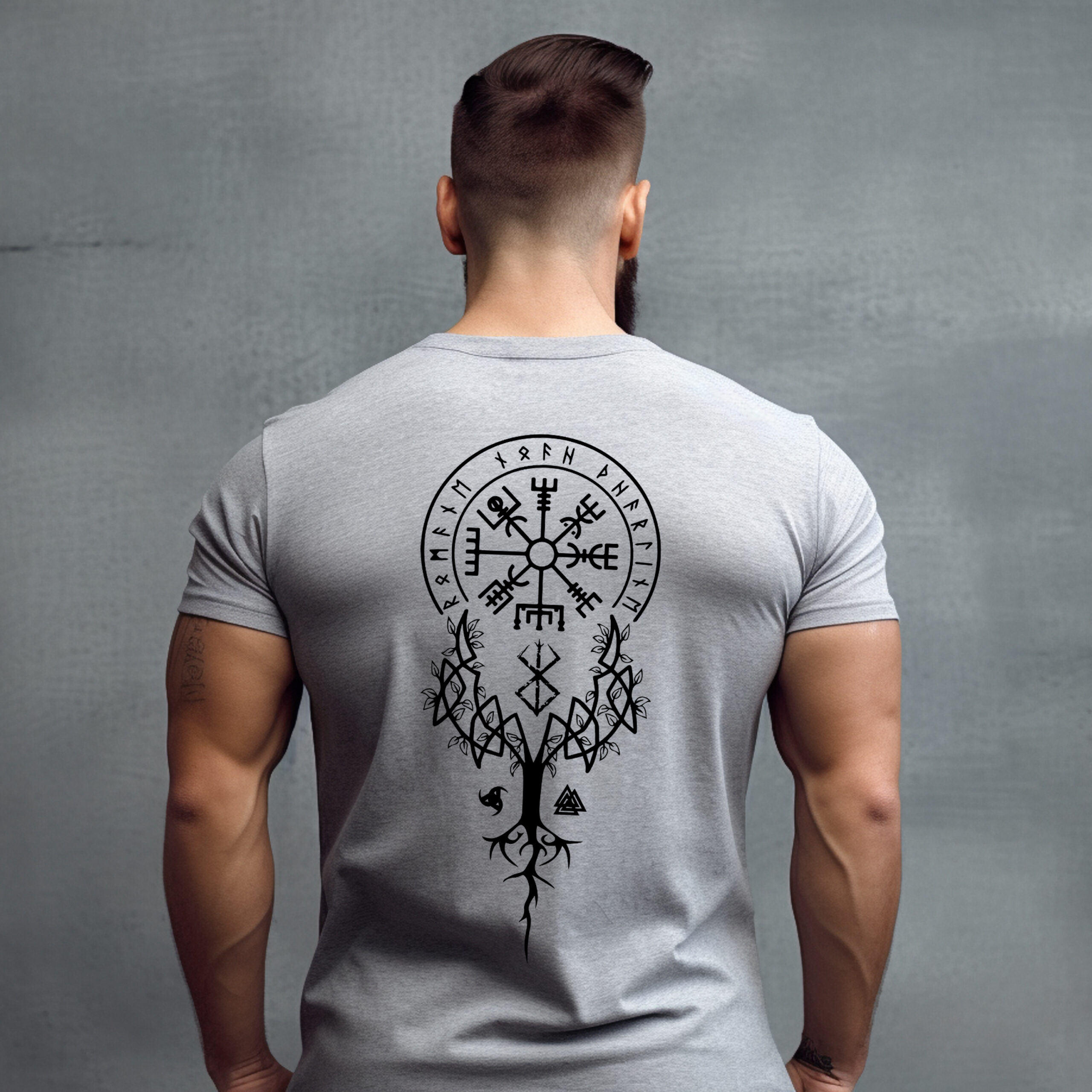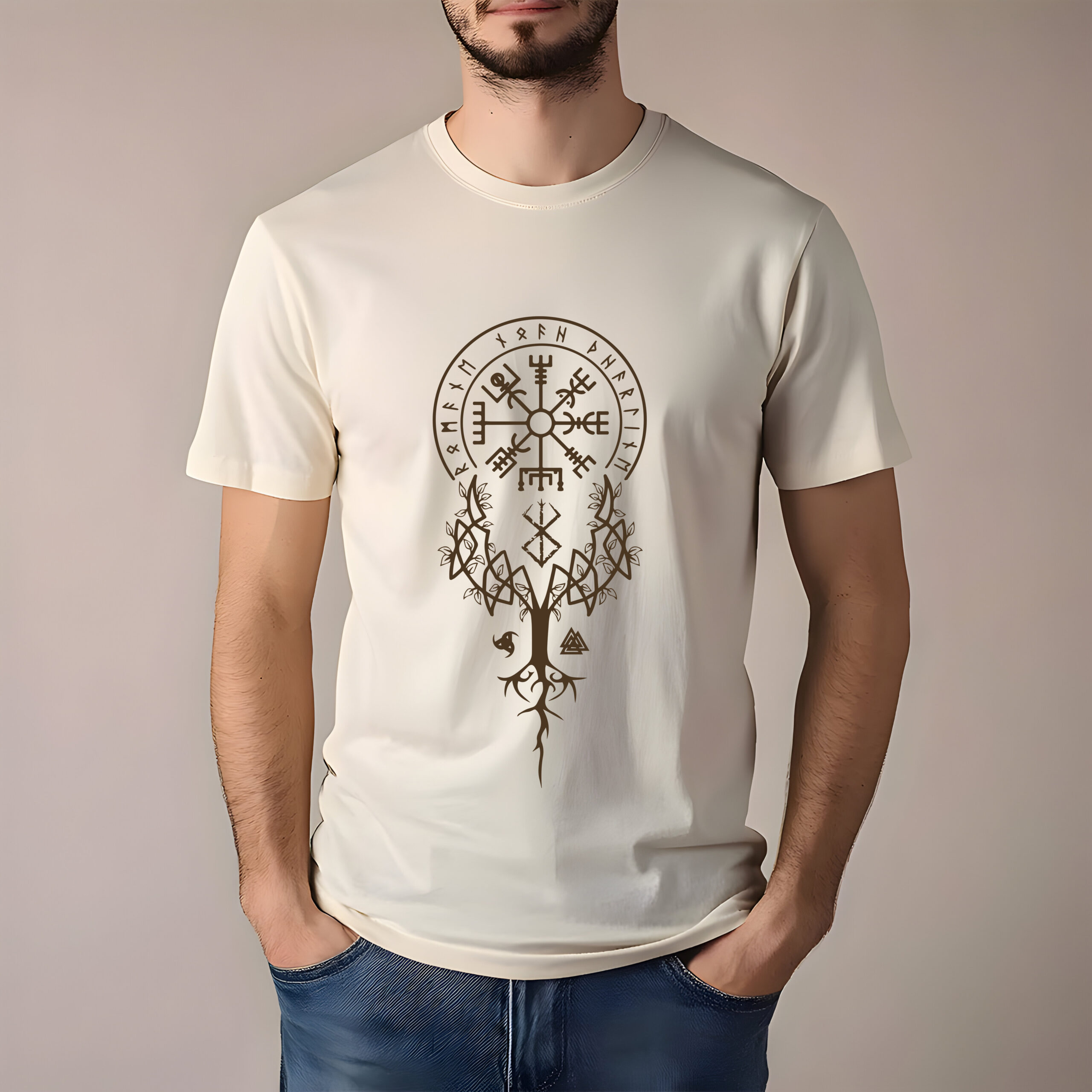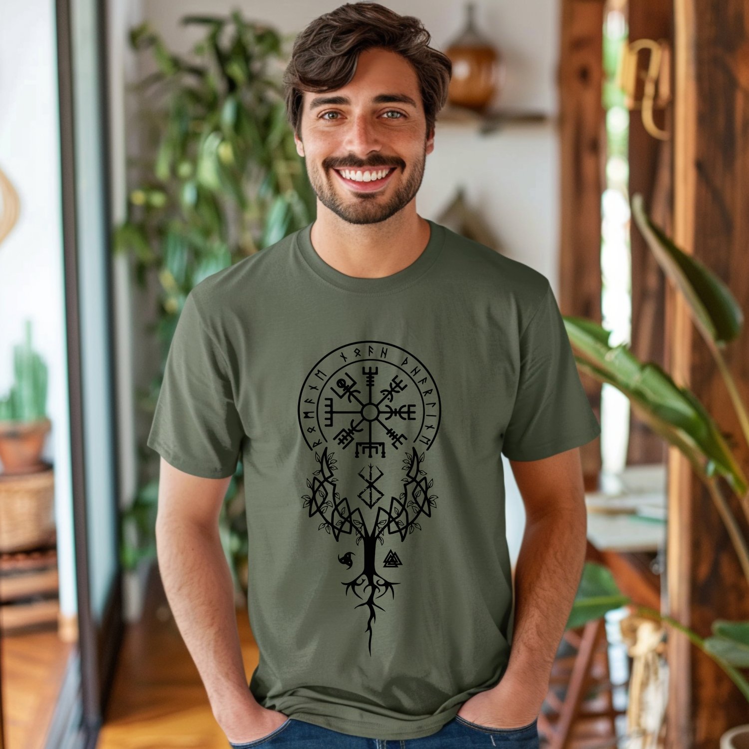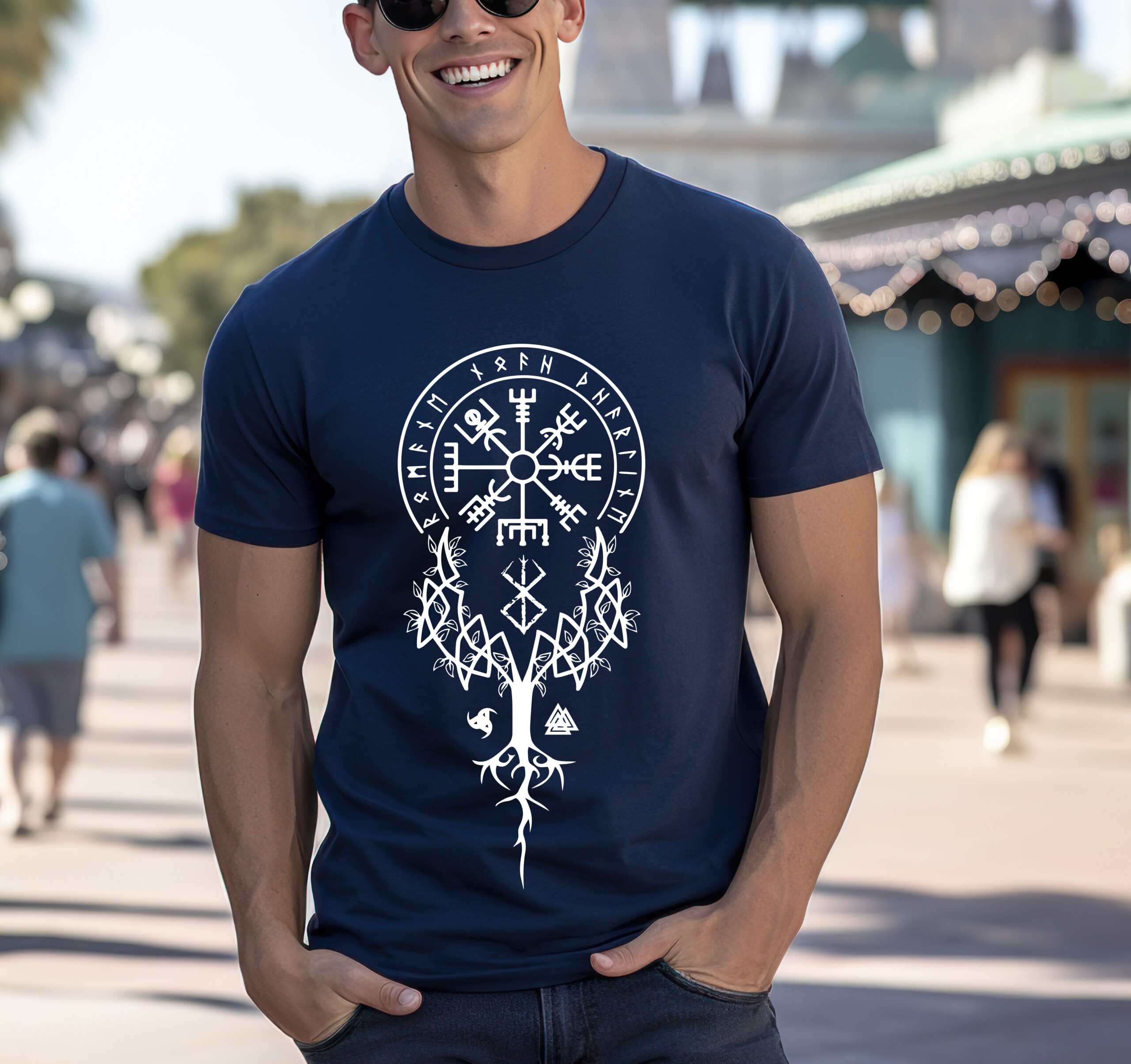 Vegvisir and Yggdrasil Viking Compass T-Shirt – Norse Mythology