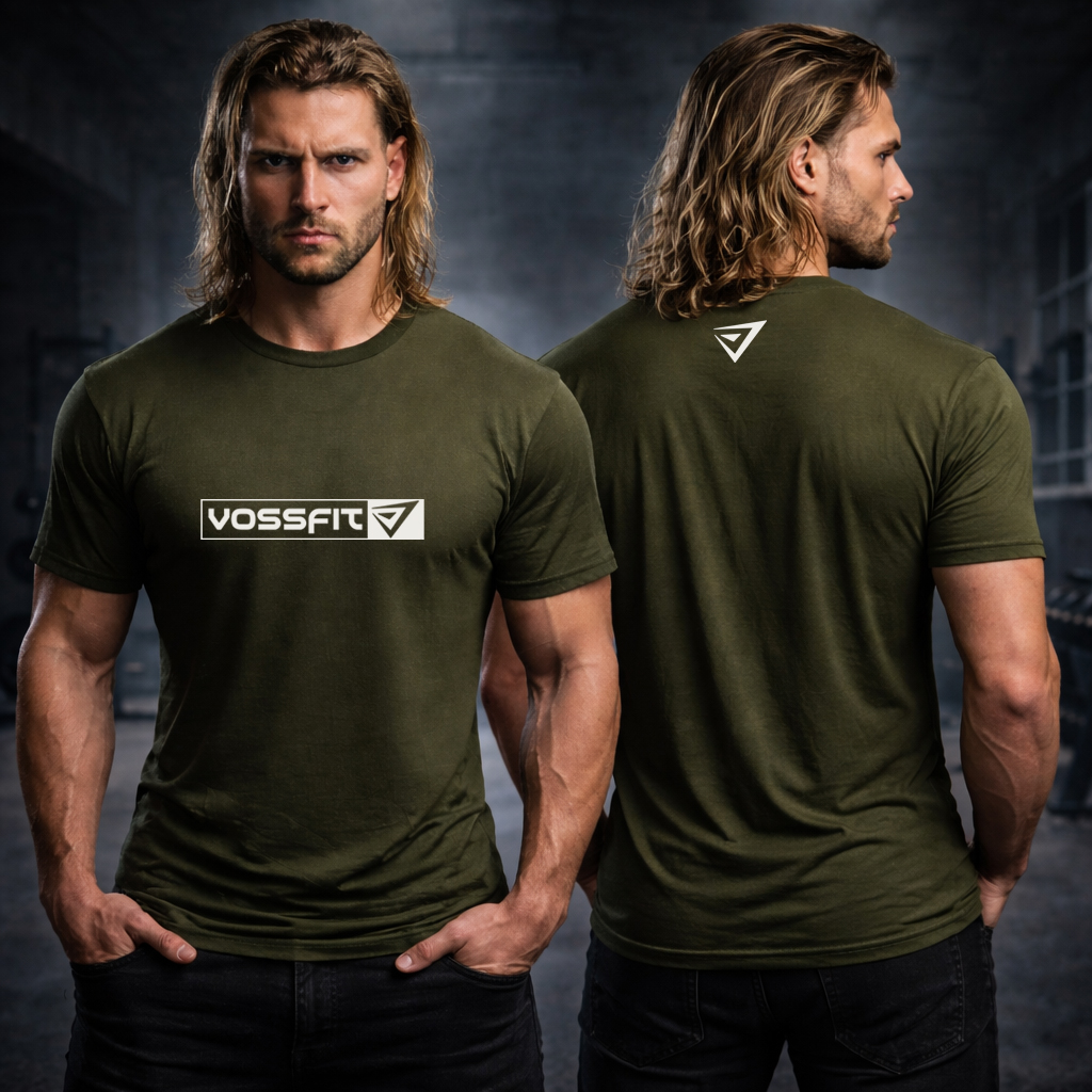 Dominate your training in the VossFit Performance Tee. Engineered for comfort and style, this breathable, moisture-wicking t-shirt features our iconic VossFit logo. Available in Black, White (Black/Gray design), Blue, Beige, Mint, Olive Green, Gray, Navy, and sizes S-2XL. Elevate your gym game!