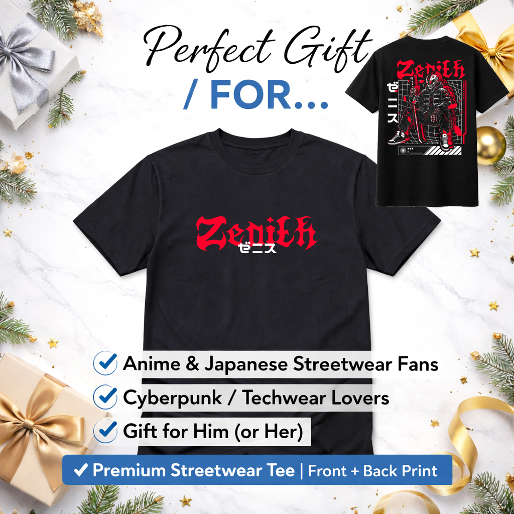 Zenith Japanese Streetwear T-Shirt (Black) – Front & Back Print